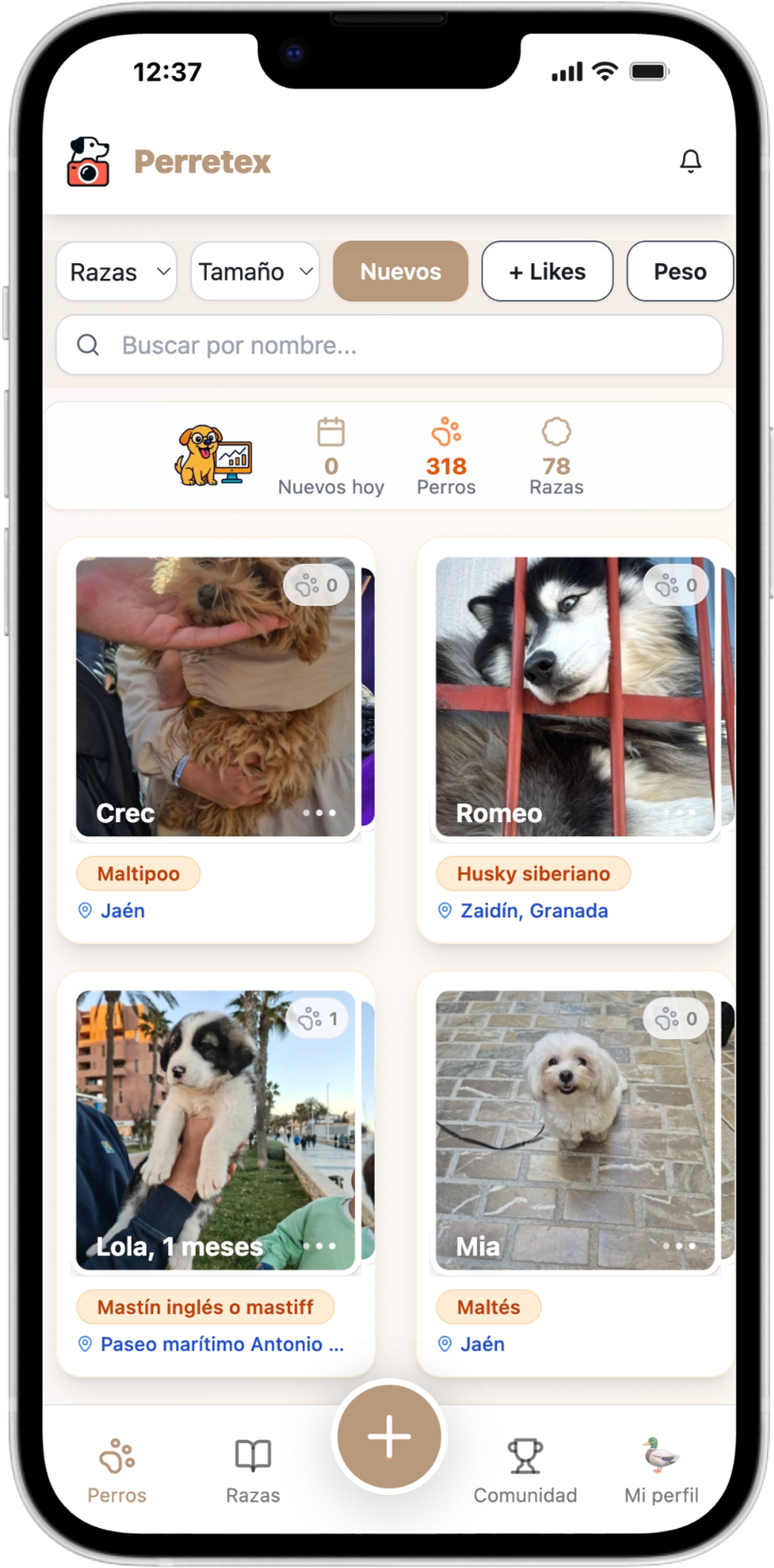 Building Perretex, why storage became essential, and what I found: automatic users upon entering, no traditional registration, and dogs with owners, likes, and comments.